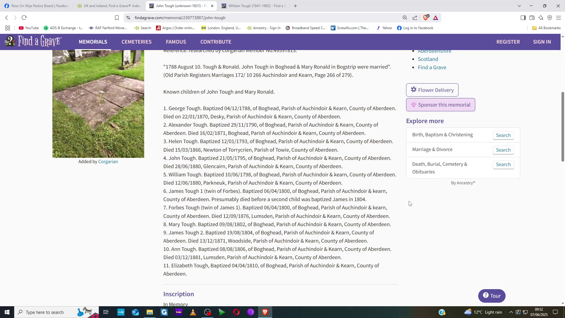 John Tough's gravestone.