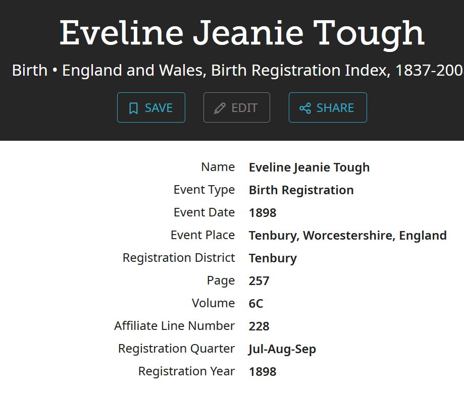 Maggie C Tough Daughter Female 7 1894 Shropshire